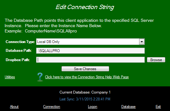 Now that you have Dropbox or OneDrive setup we have to tell Allpro Insulator where to access these files and where to copy our pictures to. If you currently have Allpro Insulator open please close it then reopen it and stay at the login screen and click the Connection button.